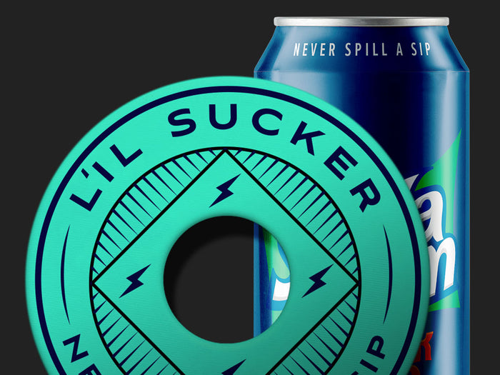 The L'il Sucker® is the ultimate beverage companion. Just slide it onto your drink from the bottom up, hit the lip take a sip. When you set your drink down the neoprene sucker will keep it firmly attached to any smooth surface. The L'il Sucker® Original fits beverage cans, beer/soda bottles, tervus tumblers, Yeti Ramblers up to 30oz